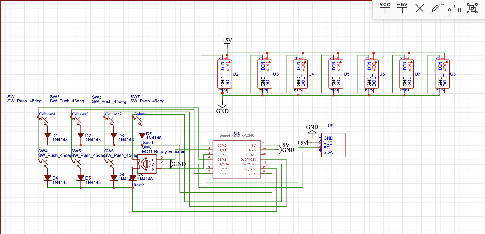 I made my PCB in EasyEDA and used a Matrix for all the key inputs, plus the rotary encoder button. I also added images to the silkscreen to give it a bit more personality!